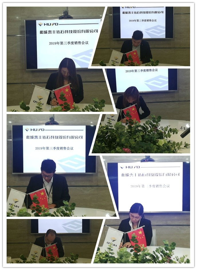 為了進(jìn)一步總結(jié)上一季度工作的完成情況,深化本季度工作思想,反省自身工作中存在的問(wèn)題和不足,完善下一步的工作計(jì)劃,并匯報(bào)總結(jié)各部門(mén)工作目標(biāo)的落實(shí)情況,10月8日上午十點(diǎn)整,于惠豐金剛石鄭州會(huì)議室召開(kāi)了2019年第三季度銷售會(huì)議。此次會(huì)議由惠豐金剛石總經(jīng)理康芳芳主持,惠豐鉆石營(yíng)銷總部、質(zhì)量總部、生產(chǎn)總部及控股子公司克拉鉆石等各部門(mén)負(fù)責(zé)人員出席此次會(huì)議。