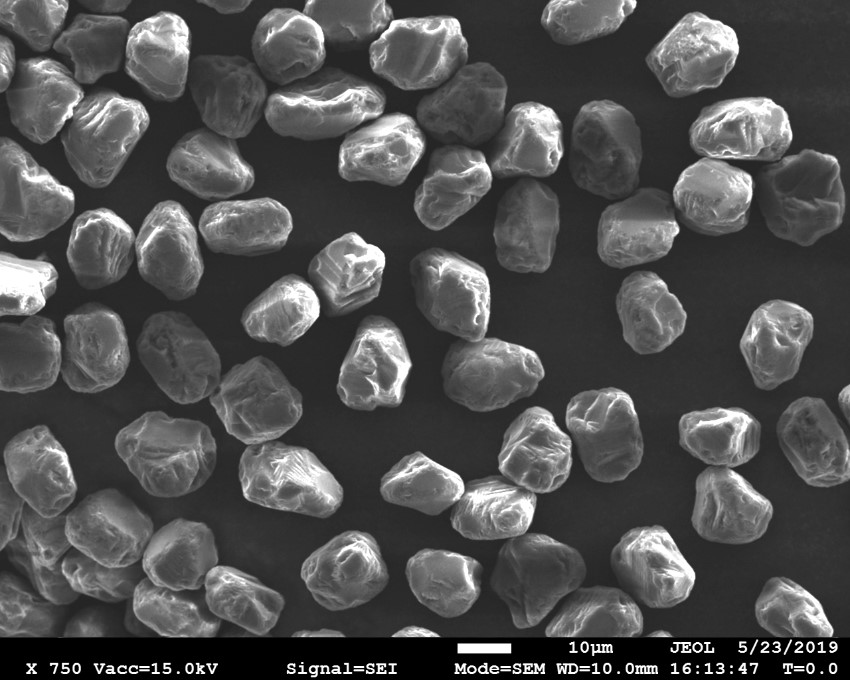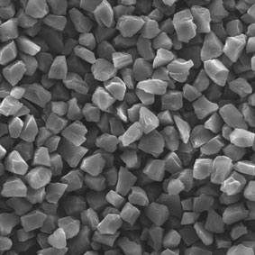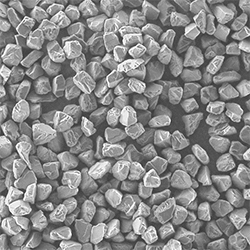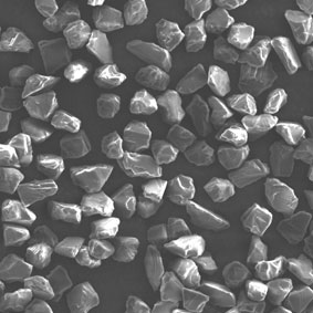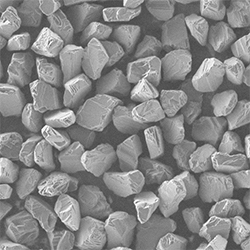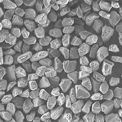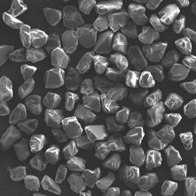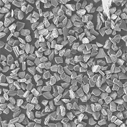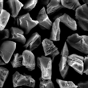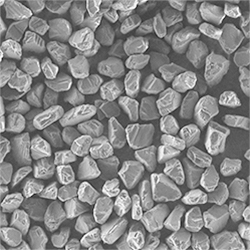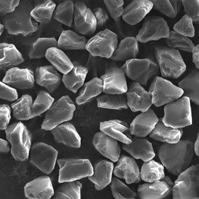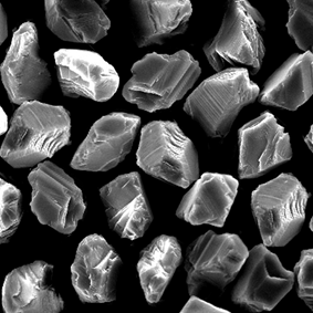原料采用高強(qiáng)度、高純度的優(yōu)質(zhì)金剛石,經(jīng)特殊的破碎、整形工藝加工,晶形規(guī)則呈接近等積形的多角狀顆粒。