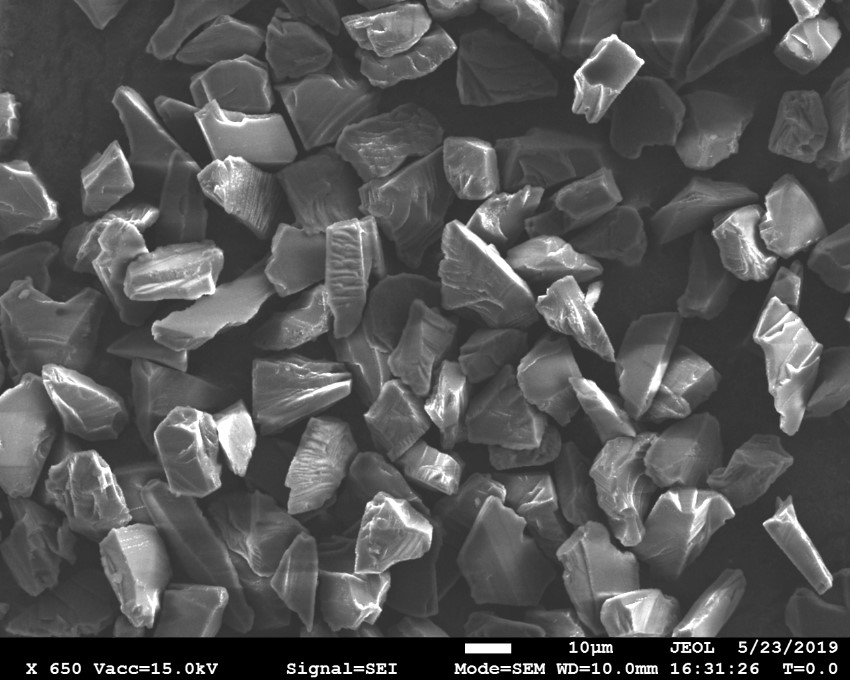 產(chǎn)品晶型不規(guī)則,表面粗糙,鋒利。